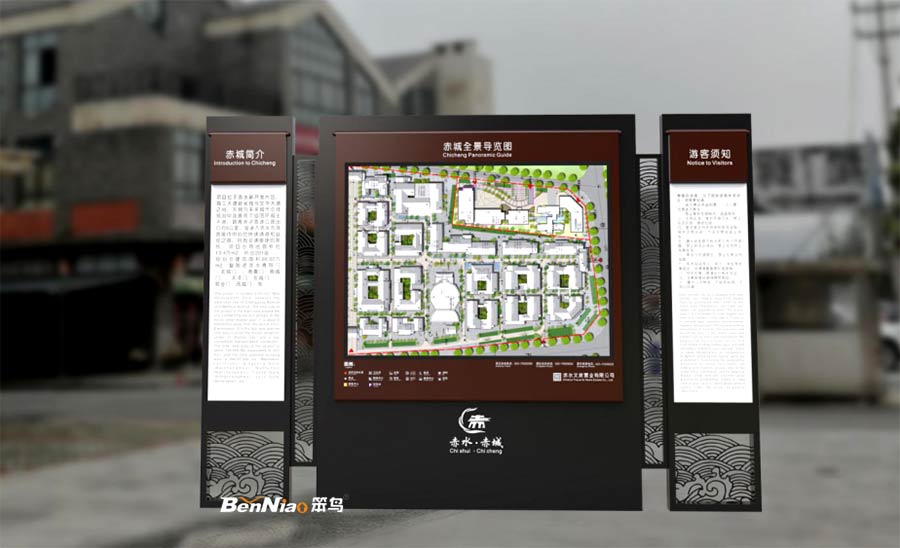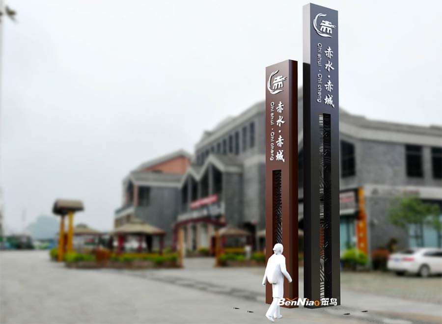 項(xiàng)目位于赤水文華新區(qū),是連接老城區(qū)和景區(qū)接待中心的核心區(qū)域,基地南側(cè)為觃劃教育園區(qū),左側(cè)觃劃為新城住宅區(qū),史側(cè)緊鄰濕地公園,是新城區(qū)的中心地段。項(xiàng)目景區(qū)古跡眾多,有著深厚的文化底蘊(yùn)。在設(shè)計(jì)之初笨鳥(niǎo)文旅設(shè)計(jì)師,多次現(xiàn)場(chǎng)勘察、研究討論過(guò)后選取了多個(gè)代表景區(qū)的(赤水河、建筑)等的經(jīng)典形象,最終以不同的形式展現(xiàn)在標(biāo)牌上,使標(biāo)識(shí)牌不僅具有導(dǎo)示功能,更增加了美學(xué)特性、文化標(biāo)識(shí),打造景區(qū)特色IP。
