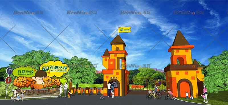 撒歡農(nóng)場(chǎng)采用了亮眼的主題配色,設(shè)計(jì)了活潑、生動(dòng)的IP人物形象,配合充滿(mǎn)童趣的字體作為入口昭示形象,同時(shí)在游玩、住宿項(xiàng)目中,也積極考慮兒童需求,建設(shè)具有安全性、教育性、符合不同年齡兒童需求的設(shè)施。