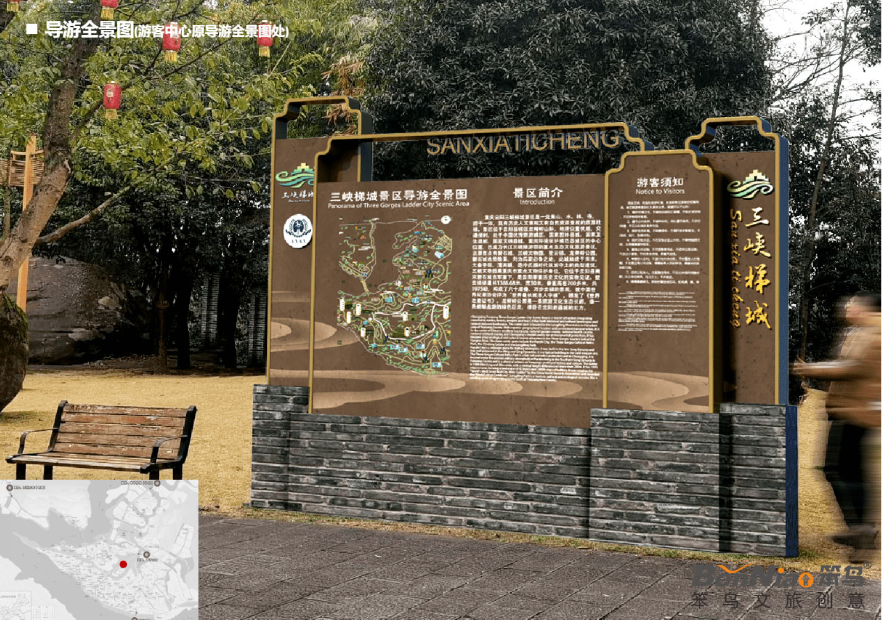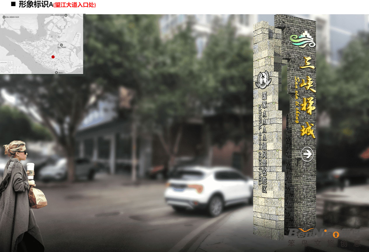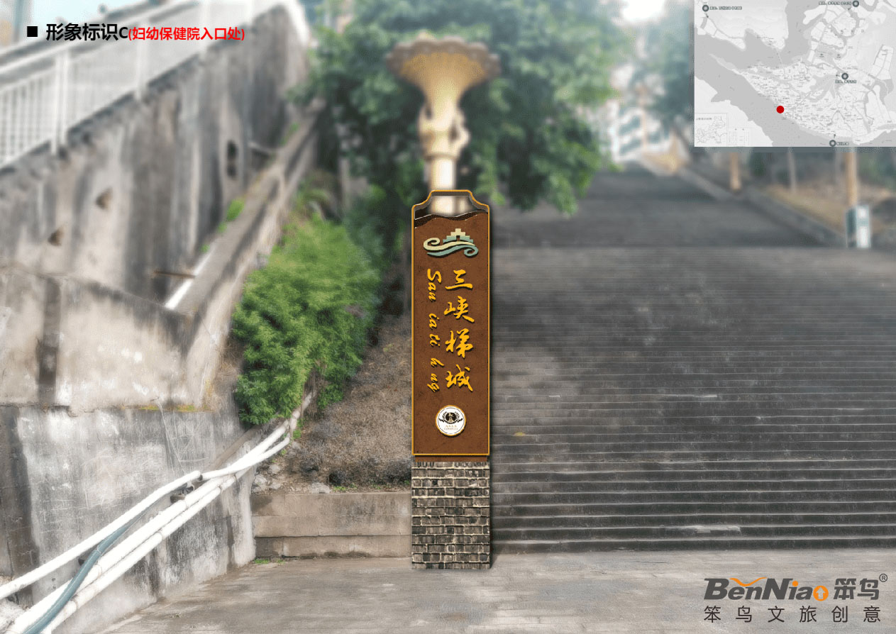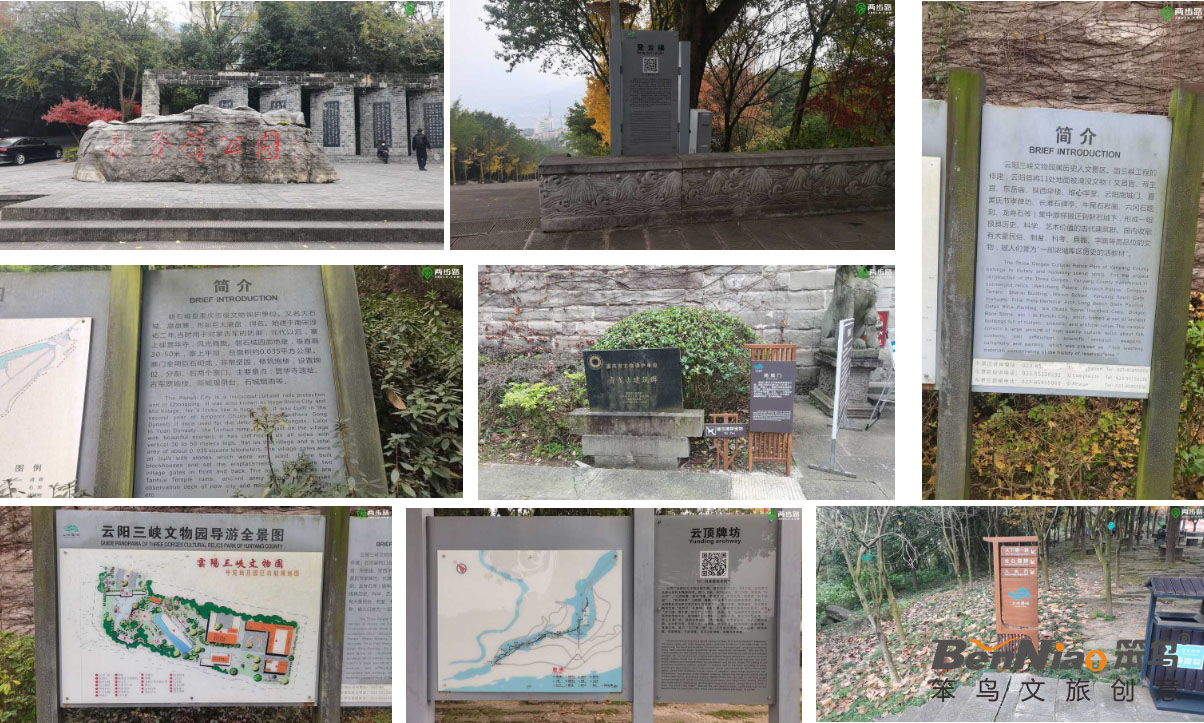 經(jīng)工作人員現(xiàn)場踏勘發(fā)現(xiàn),三峽梯城景區(qū)內(nèi)標識系統(tǒng)不完善,入口形象缺失,4A級景區(qū)昭示性缺乏,現(xiàn)有導(dǎo)視畫面磨損嚴重,信息指示不清晰,且風(fēng)格不統(tǒng)一。