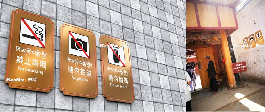 景區(qū)售票處、出入口、游客中心、醫(yī)療點、購物中心、公共衛(wèi)生間和車站等一些公共場所的提示標(biāo)識牌。