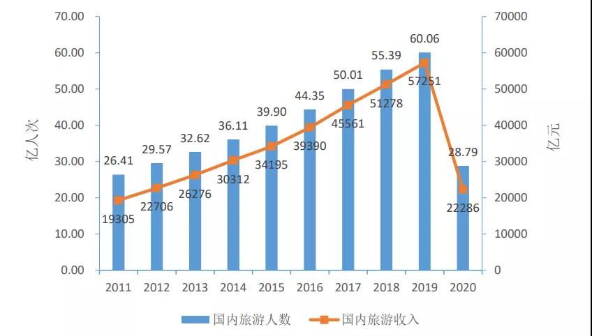 受新型冠狀病毒肺炎疫情影響,2020年國內(nèi)旅游人數(shù)28.79億人次,比2019年下降52.1%。其中,城鎮(zhèn)居民國內(nèi)旅游人數(shù)下降幅度更大,達(dá)到53.8%,農(nóng)村居民國內(nèi)旅游人數(shù)下降47.0%。