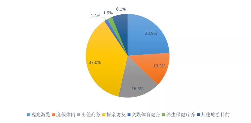 農(nóng)村居民的國內(nèi)旅游目的以探親訪友為主,占37.0%;其次是觀光游覽,占23.9%;再次是商務(wù)出差,占16.3%。
