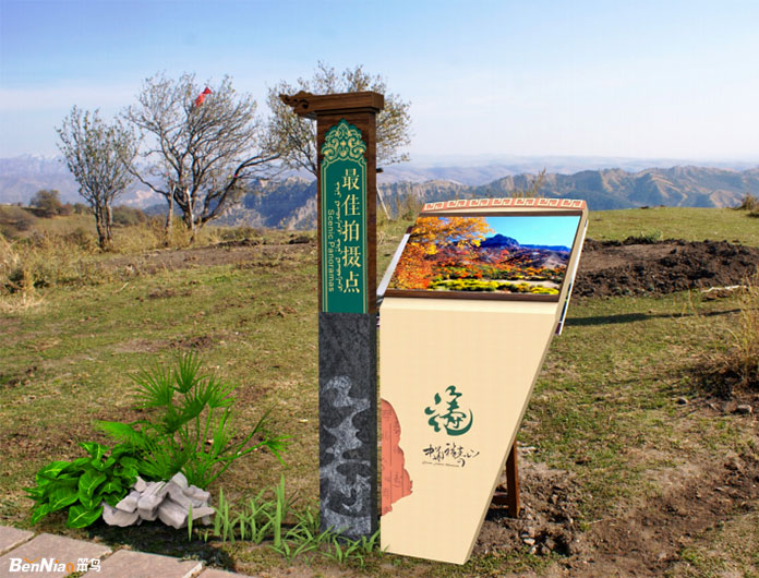 景區(qū)導(dǎo)視標(biāo)識(shí)系統(tǒng)中大多使用木材,再配以相應(yīng)工藝,就能夠創(chuàng)造出貼近自然、土生土長(zhǎng)的氛圍和景區(qū)內(nèi)的環(huán)境相得益彰,這是自然景觀所需要的。不過(guò)如果是人文景觀,就要結(jié)合景觀風(fēng)格特色加以選擇恰當(dāng)?shù)牟牧?,使其搭配協(xié)調(diào),自然而然的加入,而不是硬生生的放在那里。