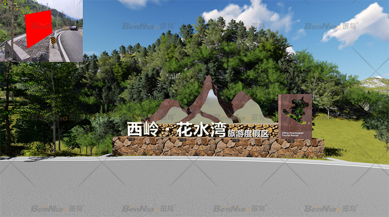 西嶺雪山.花水灣旅游度假區(qū)方向立牌設(shè)計(jì)(效果圖)