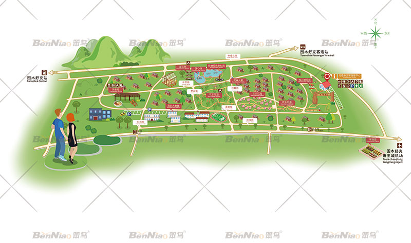 花香唐王驛旅游景區(qū)導(dǎo)視系統(tǒng)—導(dǎo)游全景圖平面展示
