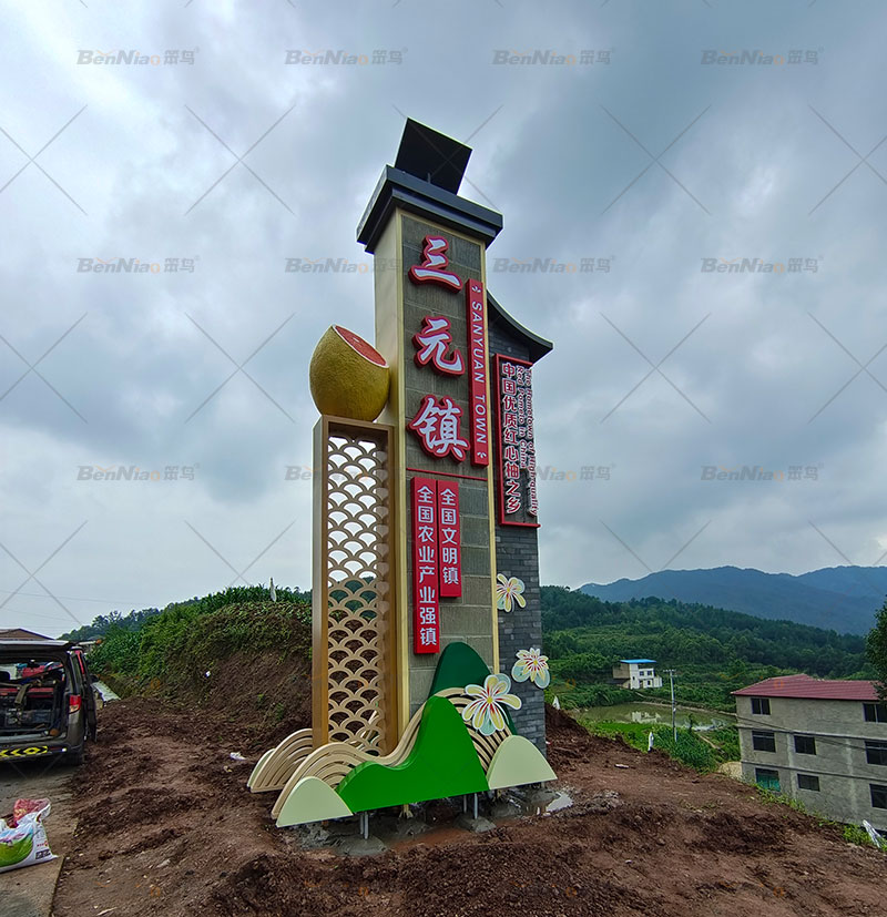 笨鳥文旅結(jié)合三元鎮(zhèn)道路交通實際現(xiàn)狀,沿著交通干道規(guī)劃、設(shè)計、制作、安裝了“產(chǎn)業(yè)精神堡壘、產(chǎn)業(yè)信息牌”等設(shè)施,大多采用簡約風(fēng)格,統(tǒng)一主色調(diào)和設(shè)計式樣,整體效果與村情、村容、村貌、村景融為一體,相得益彰,為三元鎮(zhèn)增添一道道美麗風(fēng)景線。