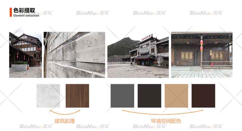 導(dǎo)視系統(tǒng),作為一種文化或文化的一部分,它不但有著引導(dǎo)、說明、指示等功能,它也是環(huán)境布局的重要環(huán)節(jié),也是營造風格、塑造文化的重要組成部分。小鎮(zhèn)的導(dǎo)視系統(tǒng)的色彩設(shè)計永遠不能離開本土文化這個背景,笨鳥文旅的設(shè)計師保持和突出文化色彩,同時具備與自然相協(xié)調(diào)性、易識別性、功能性、適應(yīng)性。通過色彩的設(shè)計加強其識別效果。