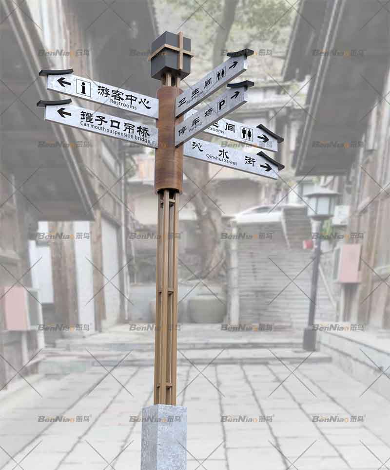 隨著文旅特色小鎮(zhèn)的加速發(fā)展建設(shè),導(dǎo)視系統(tǒng)已經(jīng)成為特色小鎮(zhèn)一項重要的基礎(chǔ)公共設(shè)施,不僅可以為人們提供環(huán)境信息、指示導(dǎo)引的基本功能,還能有效的為當?shù)鼐用癯鲂袔肀憷?,為外來游客帶來很大程度的友好感,還可以起到環(huán)境優(yōu)化和輔助管理等功能。