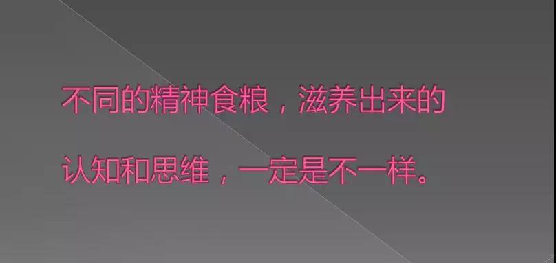 所以呢,我總結(jié)出:不同的精神食糧滋養(yǎng)出來的認(rèn)知和思維一定是不一樣的。