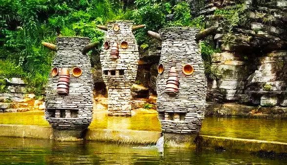 貴州花溪夜郎谷——石頭藝術(shù)基地,將石頭與旅游休閑結(jié)合起來,打造別樣的石苑酒吧、石苑餐廳、石頭花屋等,在漂亮的石頭建筑里品嘗美食,漫游生活。并開展各類石頭相關(guān)的拓展運動,比如石頭攀巖、石頭地碰碰車等。用石頭搭建場景體驗館,利用聲光電、多媒體、VR、AR、全息投影等現(xiàn)代技術(shù)模擬出各類神話傳說的經(jīng)典場景,讓人們體驗由特殊地貌與現(xiàn)代科技和創(chuàng)意造型共同打造的現(xiàn)實版的魔幻石頭城。